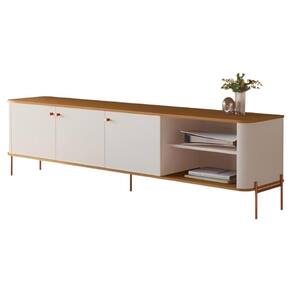 Rack Para Sala Tv Até 70 Polegadas Moderno 3 Portas - Off White Nature Bronze - Branco
