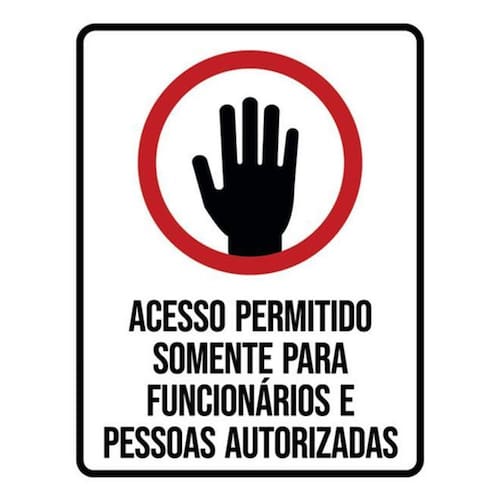 Kit 3 Placas Acesso Permitido Funcionários Autorizadas Placas de sinalizaço fabricadas com poliestireno de alto impacto PSAI de 2mm e impressão ultravioleta.