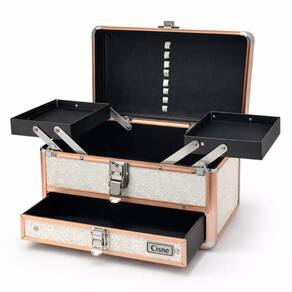 Maleta de Maquiagem Cisne Linha Shine Branco Glitter e Rose com 1 Bandeja e Gaveta Csn-5141b