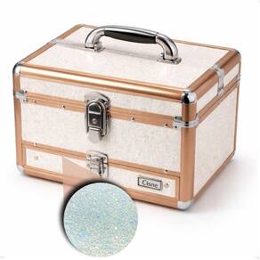 Maleta de Maquiagem Cisne Linha Shine Branco Glitter com 1 Bandeja e Gaveta – CSN-5141B