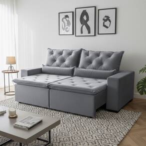 Sofá Retrátil Confort Plus Suede 150m Reclinável e com 2 Módulos Milão Cinza Claro