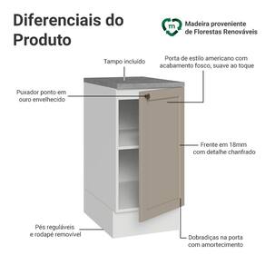 Balcão de Cozinha 40 cm 1 Porta Branco/Crema Vik Madesa - Bege
