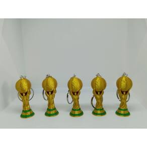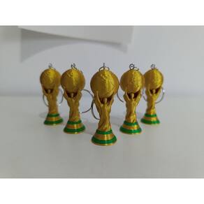Descrição do Produto O símbolo da vitória agora em suas mãos! Este anúncio refere-se a um Kit com 5 unidades do Chaveiro Taça do Mundo. Com design fiel ao troféu mais famoso do esporte, estas peças possuem um acabamento dourado brilhante e detalhes em verde na base, garantindo um visual premium e realista.