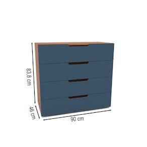 O(a) Cômoda Madri 4 Gavetas Azul/Freijó - Politorno é produzido em MDP na escala de brilho Semi-Fosco, e possui um grau de dificuldade de montagem: Médio.