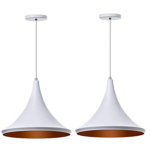 Lustre Pendente Chapéu Chinês 33Cm Branco - Kit 2 Unidades