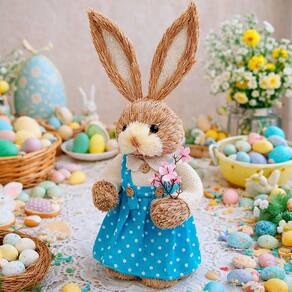 1x Coelha Azul de Palha Decorativo de Páscoa de 33cm