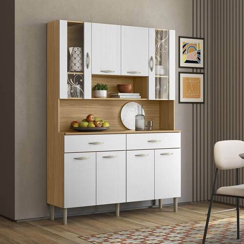 O Armário Compacto Golden é a escolha ideal para quem deseja praticidade sem abrir mão do estilo. Com acabamento moderno, oferece amplo espaço interno com 8 portas e 2 gavetas, sendo duas portas com vidro, perfeito para organizar utensílios e mantimentos. Seu design compacto se adapta com facilidade a diferentes ambientes.