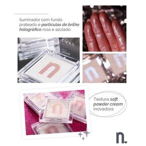 O Iluminador Galaxy Plutão Nina Makeup entrega um brilho holográfico com brilho e fundo perolado, transforma a pele em pura luminosidade.