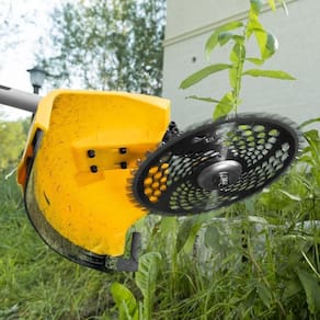 Resposta: A largura de corte com a faca é de 255 mm. Pergunta: A roçadeira vem com disco de corte?