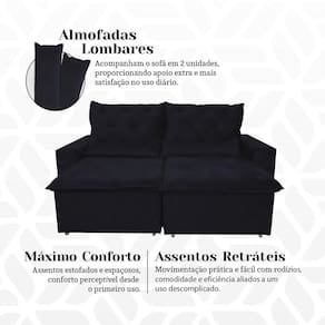 ATENÇÃO: IMAGENS MERAMENTE ILUSTRATIVAS. AS CORES PODEM VARIAR DE ACORDO COM A TELA, MONITOR, ILUMINAÇÃO DO AMBIENTE OU PERCEPÇÃO VISUAL.Sofà 150m Suede Estilo Minimalista Aconchegante para Sala de Estar MilÃo Preto