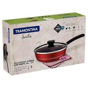 Prepare suas receitas com a frigideira funda Tramontina Sicília Excellent, ideal para frituras de imersão e pratos do dia a dia. Com 24 cm de diâmetro e capacidade de 2,5 litros, oferece praticidade para cozinhar porções maiores com cozimento rápido e uniforme. O corpo em alumínio de 3 mm e o revestimento antiaderente Starflon Excellent interno e externo evitam que os alimentos grudem e facilitam a limpeza. Acompanha tampa de vidro temperado e cabo em baquelite antitérmico, garantindo mais segurança e conforto no manuseio. Versátil, pode ser usada em fogões a gás, elétricos e vitrocerâmicos, além de ser compatível com lava-louças para um dia a dia mais prático na cozinha.