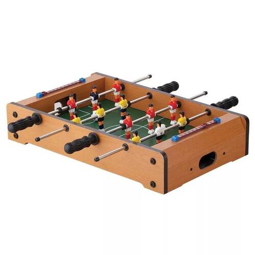 O Pebolim de Mesa Pais & Filhos é um futebol de mesa compacto (ref. 791863 ou 791750), perfeito para famílias jogarem em casa simulando partidas reais com manetes que controlam jogadores para marcar gols.