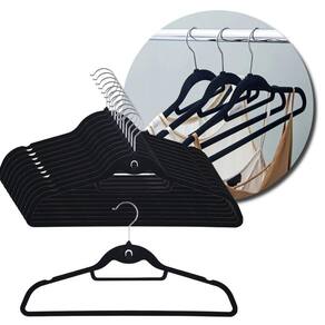 Kit 10 Cabides Slim Veludo para Organização do Guarda-Roupa em Plástico com Gancho Metálico Giratório Preto Fullcommerce