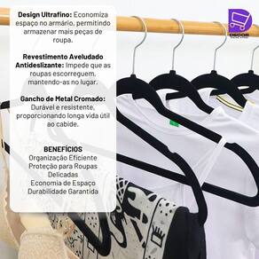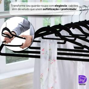 Conteúdo da embalagem: 01 kit com 10 unidades de cabides slim veludo preto