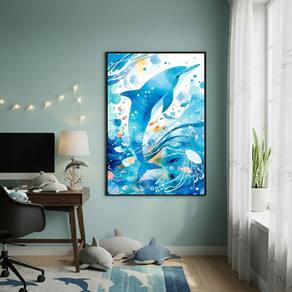 Quadro Decorativo Arte De Golfinho 70x50cm Mold Branca