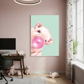 Quadro Decorativo Porco Bubble Gum 70x50cm Mold Branca