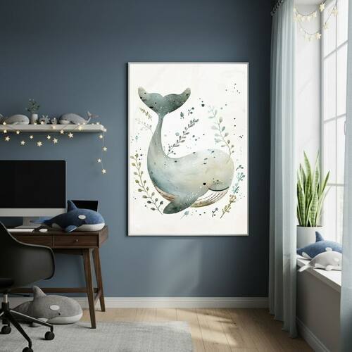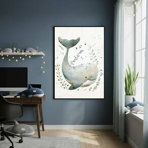 Quadro Decorativo Baleia Adorável 70x50cm Mold Preta