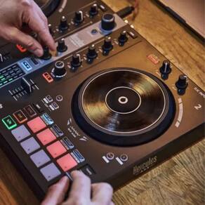 Controladora DJ compacta e portátil, ideal para iniciantes. Conexão USB para integração com softwares de mixagem. Layout intuitivo para aprendizado rápido.Demonstração 360º