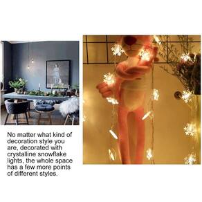 1. Material: A corda de luz de Natal adota o fio de cobre e a mangueira de alta qualidade, o que ajuda a manter o brilho da luz estável e evita que os fios se emaranham e quebrem brilhantes. Luzes decorativas de Natal com design 3D. 2. Interessante: O design com um floco de neve é animado e interessante, o que pode aumentar o seu senso de participação no festival e adicionar uma atmosfera festiva. 3. Bateria: As luzes de Natal impermeáveis têm lâmpadas duráveis de baixa tensão para iluminar sua casa com cores brilhantes, com apenas 2 pilhas AA, você pode desfrutar da atmosfera de Natal. Esta luz decorativa de Natal vem com uma caixa de bateria, sem necessidade de plugues e um botão para ligar. Conveniente para usar em qualquer canto da sua casa, como escadas, cercas, varandas, lareiras, caixilhos de portas, pátios, cercas, varandas, jardins, pátios, árvores. 4. Segurança: Estas luzes da bateria de Natal são alimentadas por baixa tensão, não superaquecerá após o uso prolongado e terá uma vida útil mais longa. AVISO: Não mergulhe a caixa da bateria em água. 5. Aplicação: Esta luz maravilhosa da corda do Natal é a combinação perfeita para o Natal e a decoração do Natal ao ar livre, pode facilmente criar uma atmosfera calorosa. Decore perfeitamente o seu quarto, janelas, estantes, cabeceira, pisos, armários, prateleiras, mesa, paredes, móveis para festas de Natal.