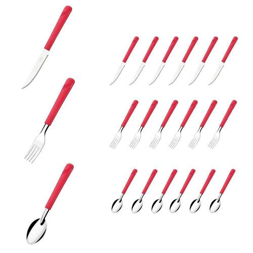Conjunto de Talheres O conjunto de talheres de mesa da linha Luna inclui garfos, facas e colheres, cada um projetado com atenção aos detalhes e ao conforto. Esses talheres são perfeitos para jantares formais e informais, sendo duráveis e fáceis de limpar e manter. Com sua beleza atemporal e funcionalidade duradoura, o conjunto de talheres de mesa da linha Luna com cabo vermelho é uma escolha inteligente para quem busca qualidade e estilo em seus utensílios de cozinha. Tenha um conjunto completo de talheres para sua mesa, proporcionando praticidade e elegância em todos os momentos.