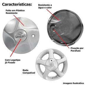 Centro de roda produzida em plástico resistente. Possuindo segura e prática aplicação através de encaixe na própria calota. Características: - calota em plástico resistente - cor: prata - fixação: por parafuso na roda não incluso - alta qualidade e resistência Itens inclusos: - uma 1 calota centro de roda com emblema. Dimensões: individual - diâmetro: 15 cm - altura: 1,5 cm de 30 dias para defeitos de fabricação. Marca: Não Informado