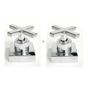 2 Hastes (cruzeta) com 3,5cm. x 3,8cm. FABRICADA EM METAL (LATÃO CROMADO) 2 Bases com 5cm. x 5cm. FABRICADA DE ABS CROMADO