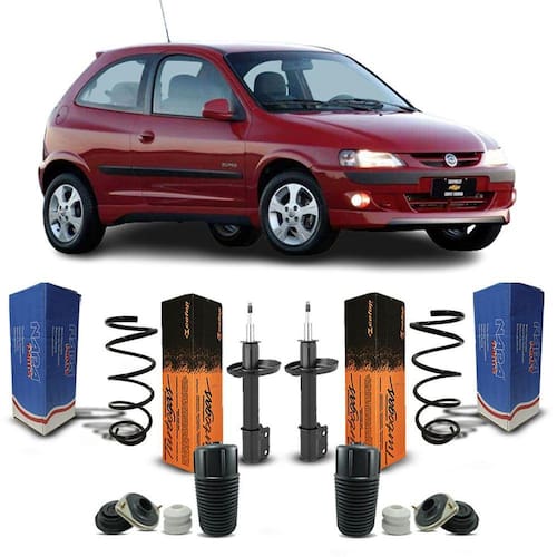 2 amortecedor kit coxim + molas dianteira celta 2001 a 2006 Seja bem-vindo a loja oficial da auto importados. Loja especializada em suspensão automotiva nacional e importada, comercializando peças de segurança e qualidade =============================================================== Conteúdo: 02 - coifa dianteira nova02 - batente dianteiro novo02 - coxim do amortecedor dianteiro novo02 - mola helicoidal do amortecedor dianteiro02 - prato da mola com rolamento dianteiro novo Part number: 808034mm / al1157 i-ch0562 cin-2225 / 93348757 =============================================================== Pergunta: qual a marca desse produtoResposta:os amortecedores são da marca cofap, uma das principais marcas de reposição do mercado. As molas são da marca napa parts. Os coxins rolamentos batentes e coifas são da marca auto importados, marca própria de extrema qualidade. Pergunta: se aplica em quais carrosResposta: este produto se aplica perfeitamente ao chevrolet celta dos anos 2000 a 2006. Pergunta: este produto possui garantia ===================================================================== Ainda tem dúvidas ou precisa de algo personalizado Utilize o campo de perguntas em caso de dúvidas ou caso precise de algo específico, estamos à disposição para atendê-lo á .