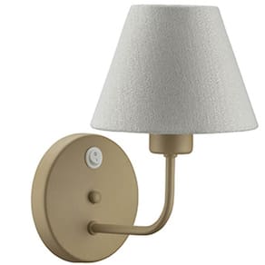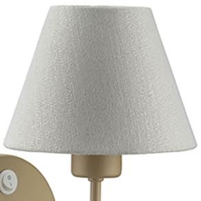 2 Arandelas de Parede em Alumínio Dourado Cúpula Tecido Natural com Interruptor Abajur Quarto Bivolt