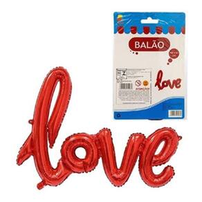 - Tamanho do Balão: 108 cm x 64 cm - Cor do Balão: Vermelho com escrita Love - Composição: Plástico poliamida metalizado