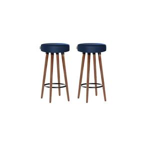 2 Bancos Banquetas Roma Slim Redonda Alta 70cm Azul - Azul Marinho