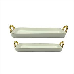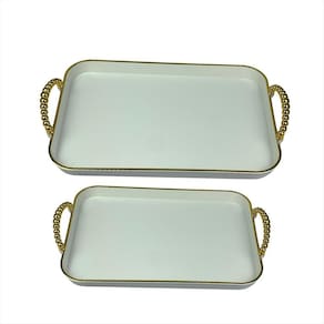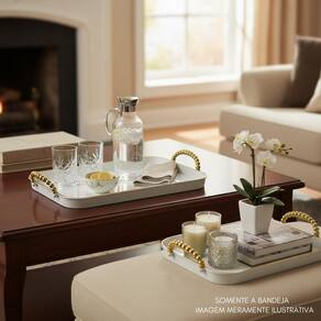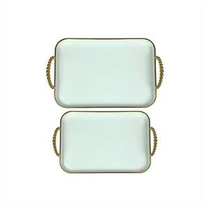 Transforme seus momentos em verdadeiras experiências de luxo com esta bandeja sofisticada com alças detalhadas. Elegante e versátil, ela é perfeita para servir bebidas em ocasiões especiais, compor uma mesa refinada ou até decorar sua casa com charme e requinte. O design moderno aliado ao acabamento delicado valoriza qualquer ambiente, seja em recepções formais ou encontros descontraídos. Mais do que um item funcional, é uma peça de decoração que transmite bom gosto e estilo. Surpreenda seus convidados com a combinação ideal entre praticidade e sofisticação. Esta bandeja é o detalhe que faz toda a diferença na sua mesa posta O kit contém 1 bandeja grande e 1 bandeja pequena. Especificações Técnicas Material: Material: PET 230g e PP 20g- PET 345g e PP 20g Medidas: 37,5cm x 26cm- 21,5cm x 32,5cm Alças: Prateadas ou Douradas com acabamento delicado Design: Transparente com detalhes texturizados Imagens ilustrativas. Marca: Não Informado