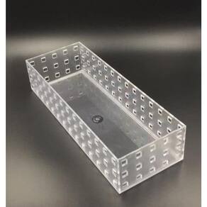 Caixa organizadora de plástico leve, resistente e prática para organizar armários, banheiros ou cozinhas, com elegância e praticidade.