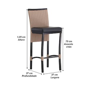 2 Banqueta Cannes em Alumínio Corda Náutica Para Edícula, Balcão, Mesa de Jantar Trama - Preto
