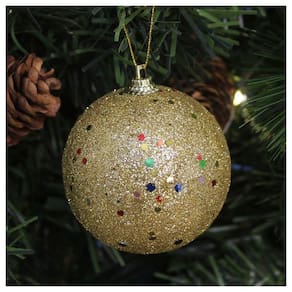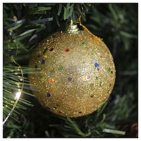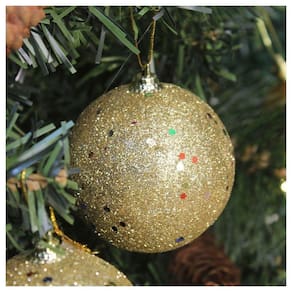 2 Bolas Enfeite Natalino Árvore Natal Dourado Glitter 70mm -