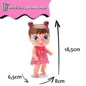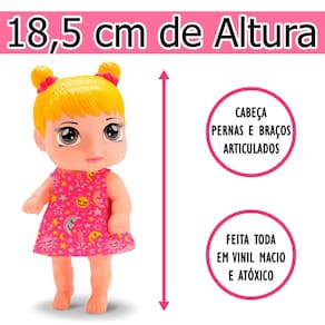• Ela é uma bonequinha linda e meiga que você pode levar para todo lugar. Possui 18,5cm de altura e um vestidinho muito fofo!