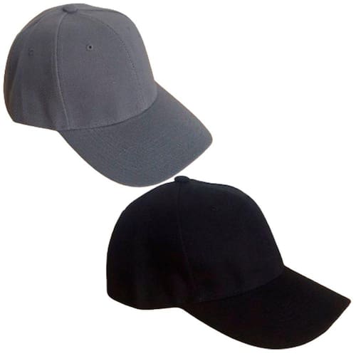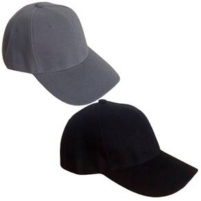 Kit contendo 2 Bonés Básicos Unisex Liso, sendo um Preto e um Cinza, Tamanho 58 cm.