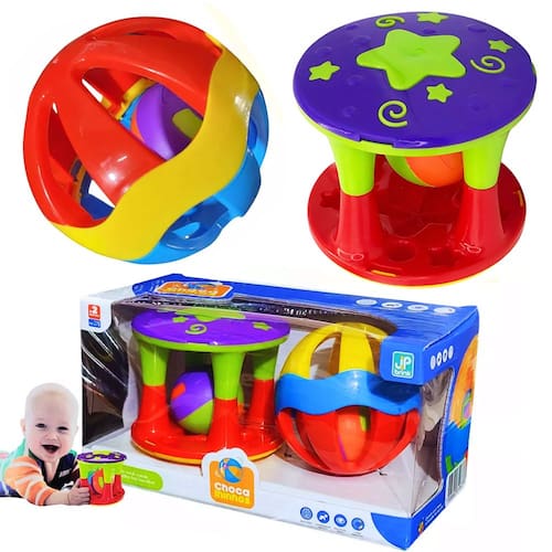 • O Bebê poderá chacoalhar o brinquedo para ouvir o som da bolinha, e também poderá brincar de rolar o brinquedo já que o mesmo tem o formato cilíndrico, possibilitando rolar facilmente.