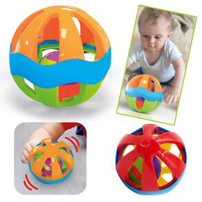 • Com seu design colorido e atrativo, a bolinha irá encantar os pequenos enquanto eles brincam. Basta agitar a bolinha para que o chocalho interno produza sons, estimulando a audição e coordenação motora do bebê.