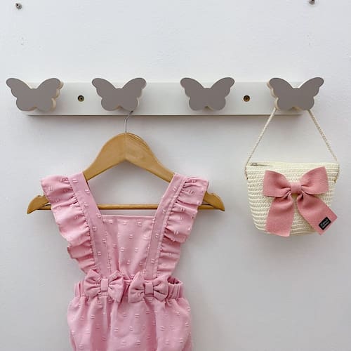 Anúncio se refere à 2 unidades; Modelo: Borboleta; Cores da face do gancho: Azul, branco, cinza ou rosa (borda sem pintura); Cor da base: Somente branco (borda sem pintura); (Fotos reais do produto, conferir no anúncio, escolha pelas variações).
