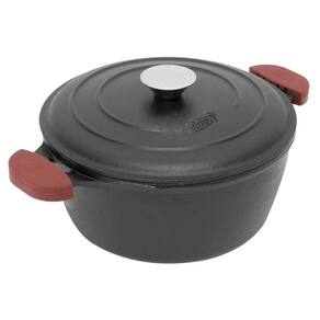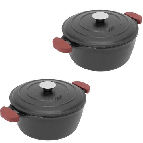 2 Caçarolas de Ferro 1,6L Panela Alças Silicone para Fogão Forno 18n MTA Preto.