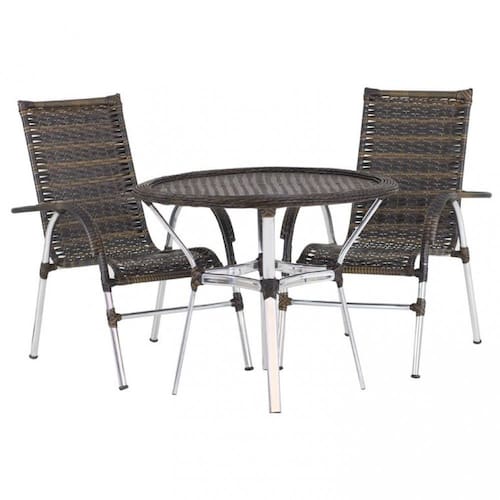 ITENS INCLUSOS: 02 Cadeiras Vênus em alumínio 01 Mesa Ascoli com tampo tramado