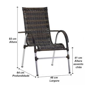 ESPECIFICAÇÕES TÉCNICAS: Cadeira Vênus: - Altura total: 93 cm - Altura assento ao chão: 41 cm - Largura: 46 cm - Profundidade: 64 cm - Suporta até 170 kg