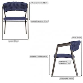 2 Cadeiras Atenas Tricô Náutico e Alumínio Edícula e Cozinha Trama - Azul