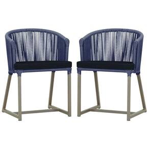 2 Cadeiras De Jantar Noronha Fendi Corda Náutica E12 Trama Azul