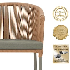 Descubra a Elegancia e Durabilidade da Cadeira Noronha. Combinando estilo e resistencia, esta cadeira traz o melhor do design contemporaneo em aluminio com micro pintura e acabamento em corda nautica. O estofado impermeavel completa o conforto e a funcionalidade, tornando-a ideal para ambientes externos e internos. Qualidade e elegancia que transformam qualquer espaco. Adicione um toque de sofisticacao e conforto ao seu espaco com a cadeira Noronha.