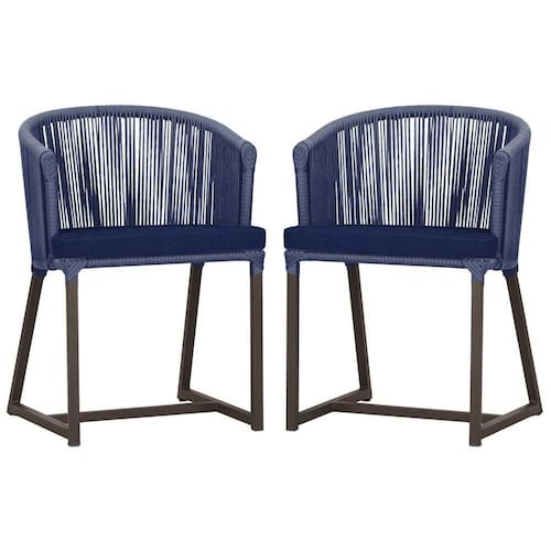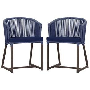2 Cadeiras De Jantar Noronha Marrom Corda Náutica E10 Trama Azul