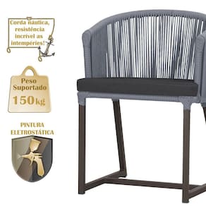 Descubra a Elegancia e Durabilidade da Cadeira Noronha. Combinando estilo e resistencia, esta cadeira traz o melhor do design contemporaneo em aluminio com micro pintura e acabamento em corda nautica. O estofado impermeavel completa o conforto e a funcionalidade, tornando-a ideal para ambientes externos e internos. Qualidade e elegancia que transformam qualquer espaco. Adicione um toque de sofisticacao e conforto ao seu espaco com a cadeira Noronha.