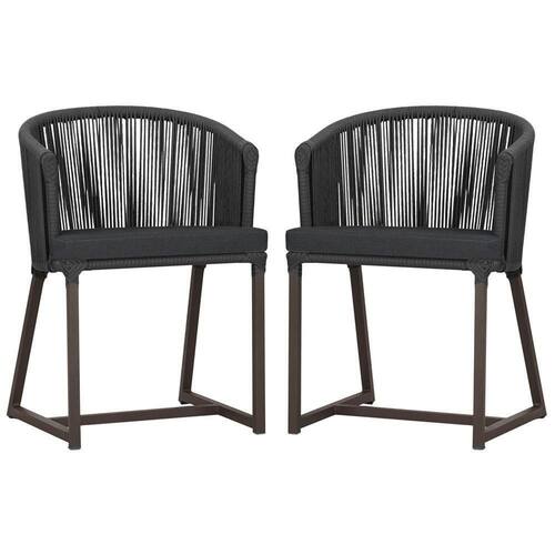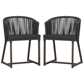 2 Cadeiras De Jantar Noronha Marrom Corda Náutica E11 Trama Preto