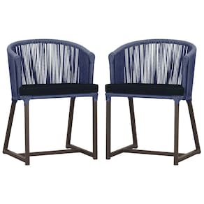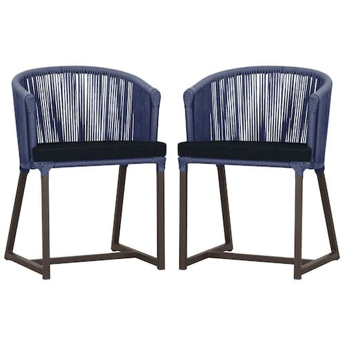 2 Cadeiras De Jantar Noronha Marrom Corda Náutica E12 Trama Azul