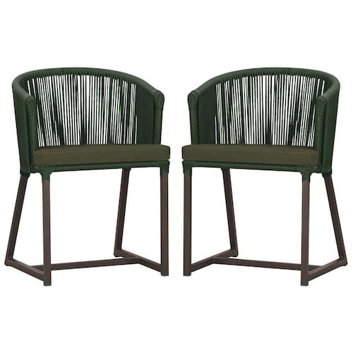 2 Cadeiras De Jantar Noronha Marrom Corda Náutica E13 Trama Verde